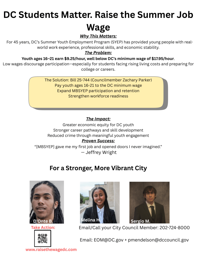 Youth ages 16–21 are paid $9.50/hour, far below DC’s minimum wage of $17.95/hour.
